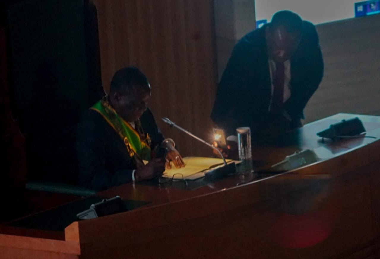 A power outage briefly plunged the new Parliament Building into darkness during President Emmerson Mnangagwa’s State of the Nation Address (SONA) on Tuesday, forcing him to continue his speech under torchlight.Parliament has since confirmed that a tripped circuit breaker was responsible for the blackout, which lasted around ten minutes before power was restored.In an official statement, Clerk of Parliament Kennedy Chokuda explained that the incident occurred while the building was running on generator power, with ZESA electricity on standby.